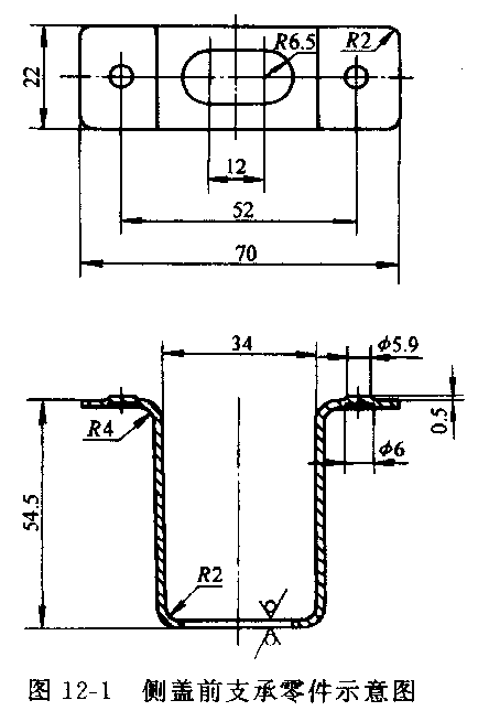 制件如图1-1所示,材料为不锈钢,材料厚度为0.5mm,制件尺寸精度按图纸要求,未注按IT12级,年产生产50万件。